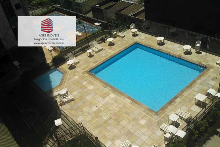 Prédio: Excelente, 100% revestido com mármore /cerâmica/ granito, hall social decorado, guarita com porteiro 24 horas, lazer completíssimo com quadra, piscinas, salão de jogos, sauna, playground, salão de festas, 02 vagas que podem ser livres no S1. Apto: Excelente estado de conservação, vista definitiva e maravilhosa, sala em \'L\' para 02 ambientes com rebaixamento de gesso, iluminação indireta, armários, varanda fechada em blindex, 03 quartos com armários sendo 01 suíte, banhos (com box blindex, armários sob bancada de granito) social (com hidro), ótima cozinha com armários sob e sobre bancada, coifa, área de serviços e dce.